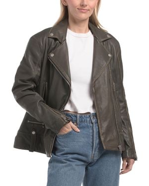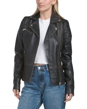 Genuine Leather Boyfriend Biker Jacket For Nylon/Polyester/Leather - Black