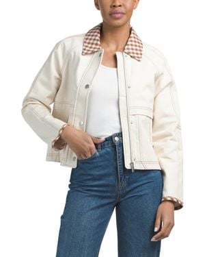 Denim Jacket With Gingham Detailling For Cotton/Polyester - White