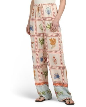 Linen Blend Tropical Summer Print Pants For Linen/Rayon - Green