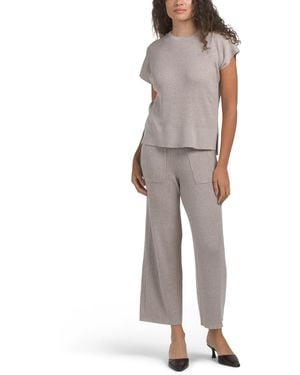 Gemma Short Sleeve Top And Wide Leg Cropped Pants Set, Nylon/Polyester/Acrylic - Multicolor