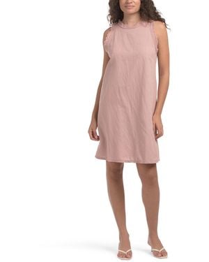 Linen Blend Sleeveless Mini Dress For Cotton/Linen - Pink
