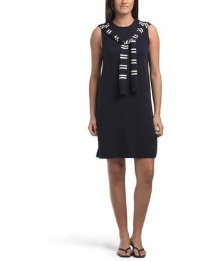 Tie Neck Mini Sweater Dress For Nylon/Polyester/Acrylic - Blue