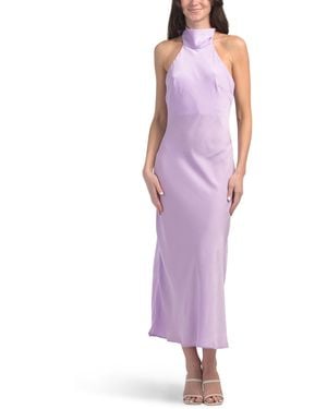 Sleeveless Halter Open Back Gown For Polyester - Purple