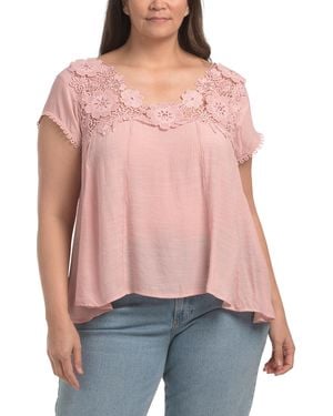 Plus Babydoll Top With Lace And Floral Applique For Polyester/Rayon - Red