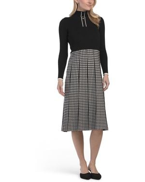 Mixed Media Gingham Skirt Dress For Spandex/Polyester - Black