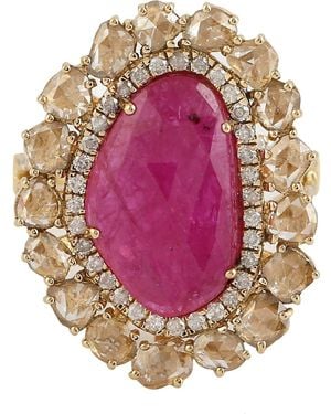 Topaz And Ruby Cocktail Ring With Diamonds - Pink