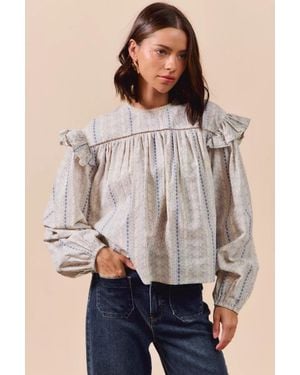 Floral Cotton Print Ruffled Long Sleeve Blouse - Natural