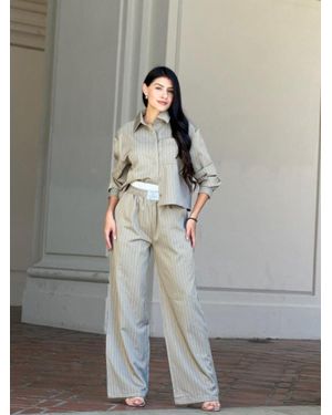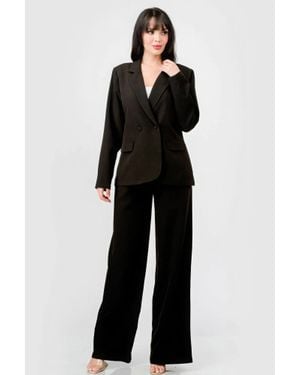 Luxe Stretch Woven Loose Fit Blazer And Wide Legs Pants Semi Formal Set - Black