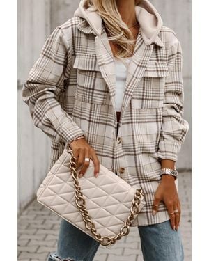 Khaki Plaid Removable Hood Buttoned Shacket - Natural