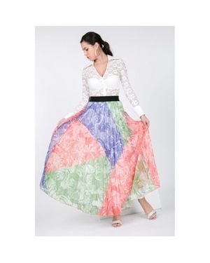 Floral Print High Waist Skirt A Line Long Skirt - Natural