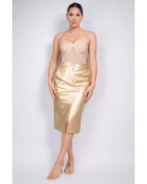 Solid High-Waist Skirt With Button Trim And Side Slit - Pink
