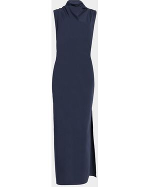 Balloon-Sleeve Midi Dress - Blue