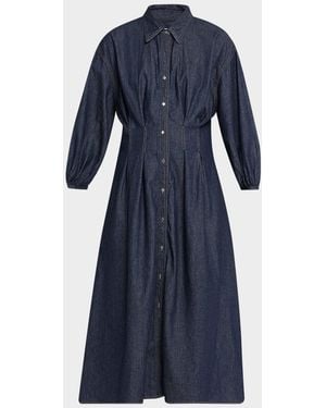 Mason Pleated Denim Midi Shirt Dress - Blue