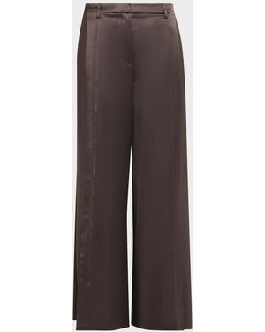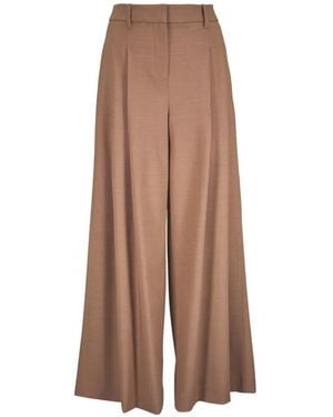 New Didi Pleated Stretch Wool Wide Leg Pants - Brown