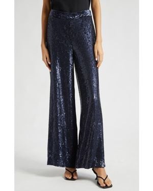 Adieu Sequin Wide Leg Silk Pants - Blue