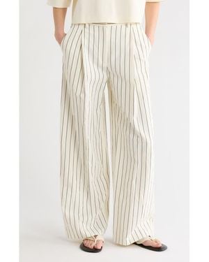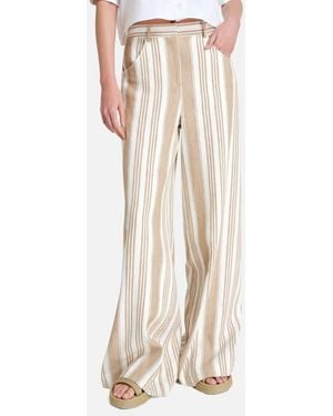 Demie Variegated Stripe Linen & Cotton Wide Leg Pants - Natural