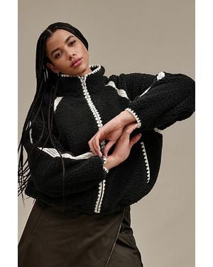 Nikia Crochet Fluff Zip-Up Jacket - Black