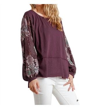 Floral Lace Sleeve Top - Purple