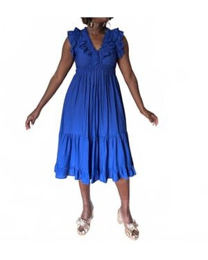 Bekah Ruffle V-Neck A-Line Midi Dress - Blue