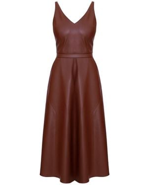 Malou Chocolate Vegan Leather Midi Dress - Brown