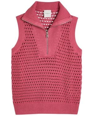 Bains Half Zip Open-Knit Vest - Red