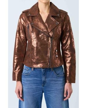 Biker Nature Leather Jacket With Fitted Silhouette - Brown
