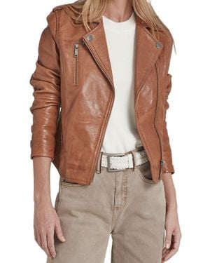 Biker Nature Leather Jacket With Fitted Silhouette - Brown