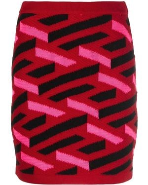 Geometric Intarsia Knitted Skirt - Red