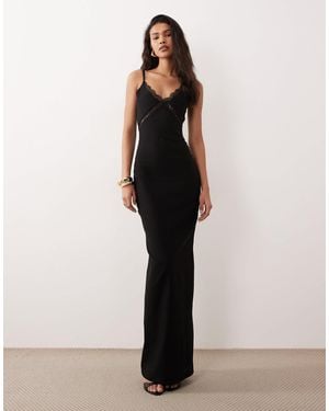 Bengaline Lace Trim Cami Maxi Dress - Natural