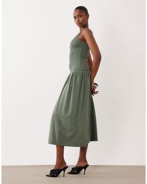 Hammered Waist Cinching Slinky Midi Dress - Blue