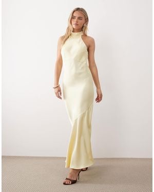 Cowl Neck Satin Maxi Dress With Draping Frill Straps - Green