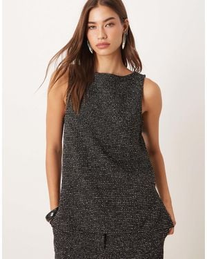 Sleeveless Textured Glitter Top Co-ord - Black