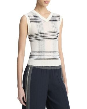 Plaid Short Sleeve Cashmere, Wool & Silk Sweater - White