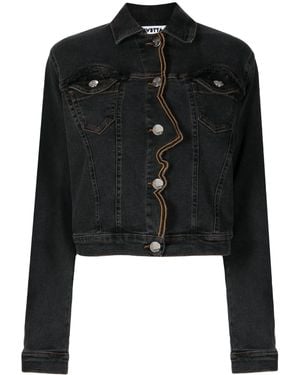 Trim-Embroidered Denim Jacket - Black