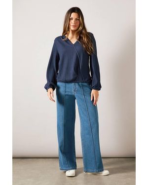 Textured Jersey Wrap Top - Blue