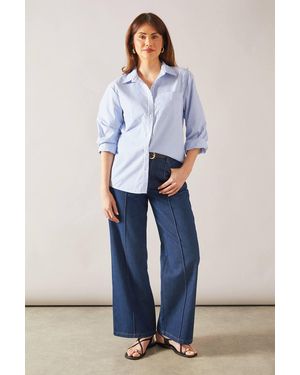 Striped Oversized Button Front Shirt - Blue