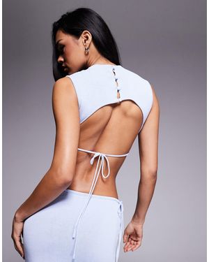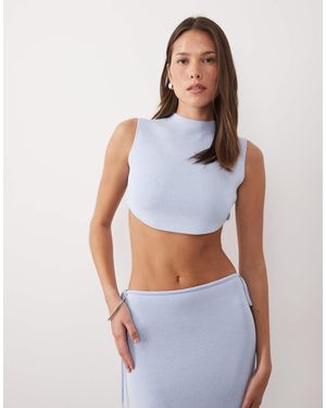 Sienna Fine Knit High Neck Open Button Back Detail Crop Top Co-ord - Blue