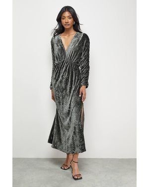 Burnout Velvet Batwing Midi Dress - Green