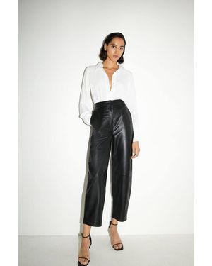 Real Leather All Over Stud Barrel Leg Trouser - Black