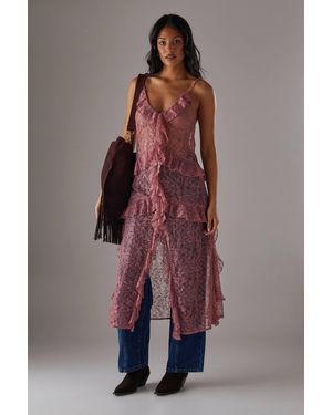 Lace Ruffle Front Maxi Strappy Top - Pink