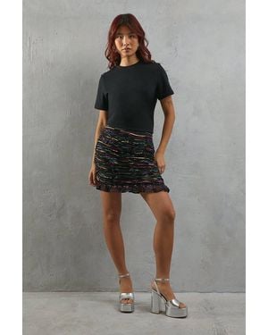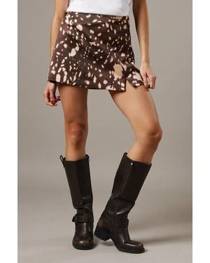 Mixed Flannel Buckle Side Pleat Awkward Length Skirt - Multicolor