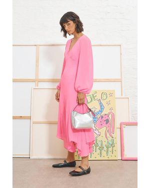 Tony Chiffon Plunge Neck Asymmetric Hem Midi Dress - Pink