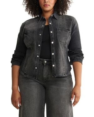 Pmi Western Denim Fitted Waist Snap-Up Shirt - Black