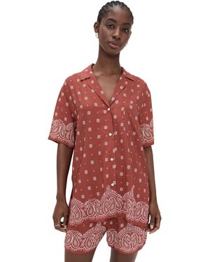 Amelia Print Linen Blend Button-Up Shirt - Natural