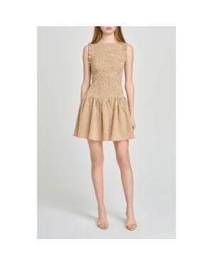 Esme Gingham Smocked Bodice Drop Waist Minidress - Brown