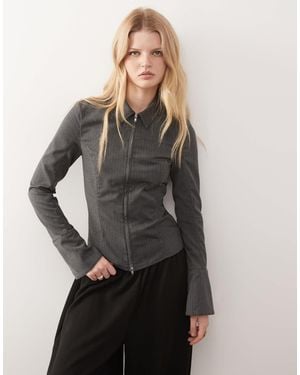 Zip Through Shirt With Flare Sleeve Detail - Gray