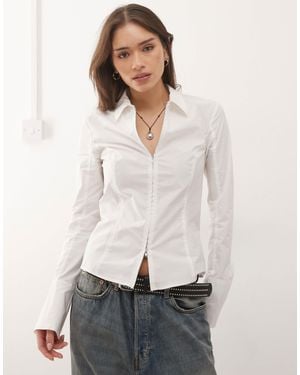 Zip Up Shirt With Flare Sleeve Detailing - White