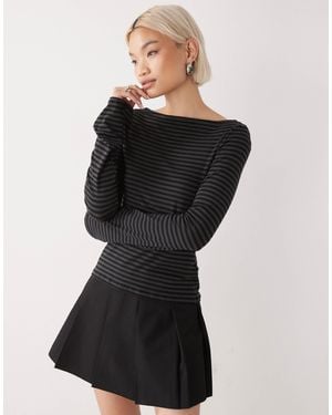 Annie Super Soft Boat Neck Long Sleeve Top - Black