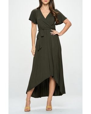 Flutter Sleeve High/Low Wrap Dress - Blue