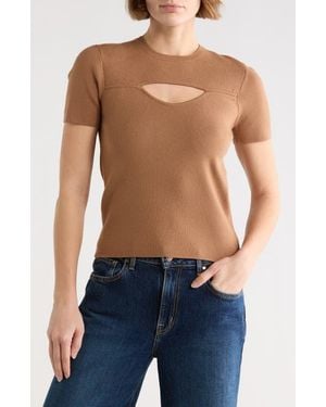 Cutout Short Sleeve Knit Top - Brown